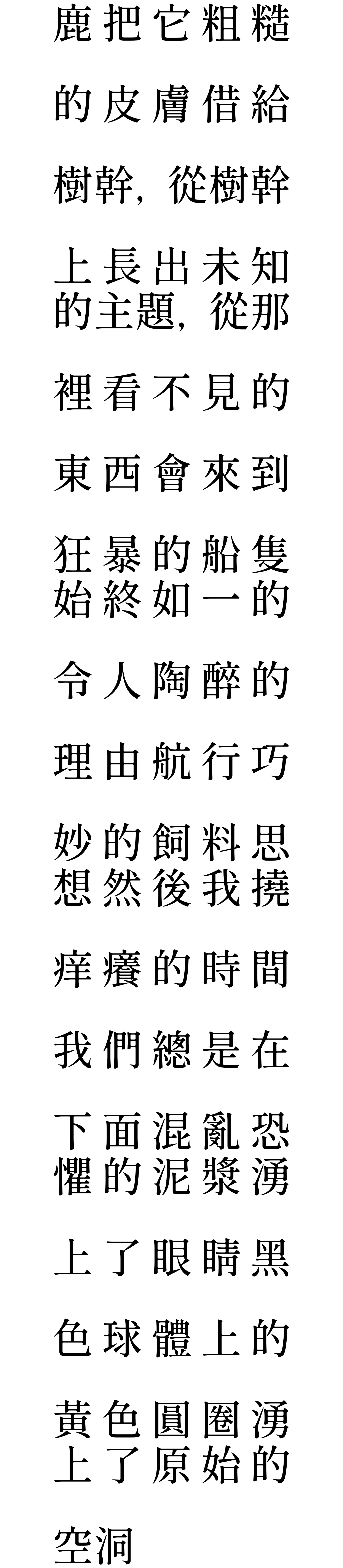 the deer lends its rough skin to the trunk of the tree from which grows the unknown subject from where the invisible will come to the consistent intoxicating reason of furious ships navigating the skilful thought of feed then I tickle the time in which we are always scrambled under the mud of fear poured over the eyes yellow circle on black sphere poured over the primordial hollows